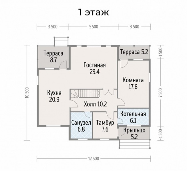 Кухня-столовая объединена с гостиной широким арочным проёмом, здесь же находится отдельный выход на террасу. Второй этаж отведён под спальни. Можно выбрать проекты с прачечной, гардеробными или вторым светом.