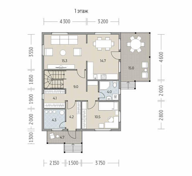 В двухэтажных коттеджах серии «Норд» прослеживаются черты скандинавского минимализма: сдержанность форм и минимум декора.