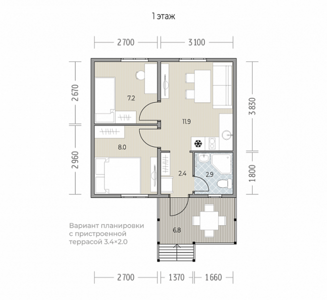 Особенность серии: широкое крыльцо, доступное уже в базовой комплектации. Дополнительно можно выбрать проект со вторым светом и террасой.