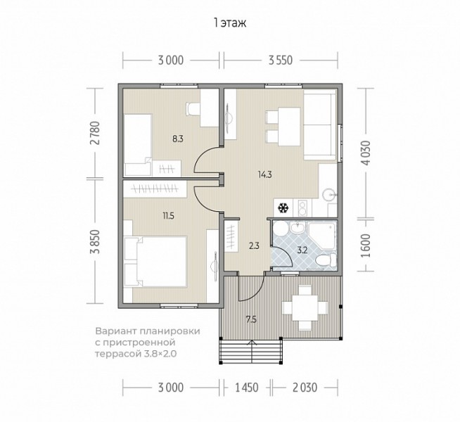 Особенность серии: широкое крыльцо, доступное уже в базовой комплектации. Дополнительно можно выбрать проект со вторым светом и террасой.