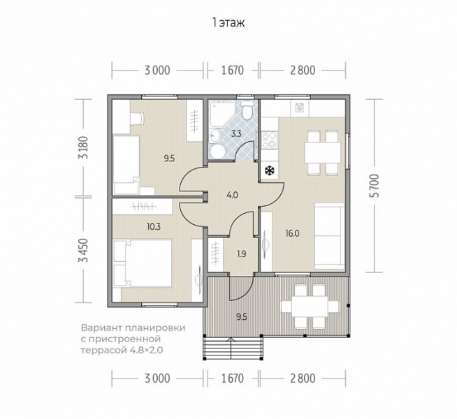 Особенность серии: широкое крыльцо, доступное уже в базовой комплектации. Дополнительно можно выбрать проект со вторым светом и террасой.