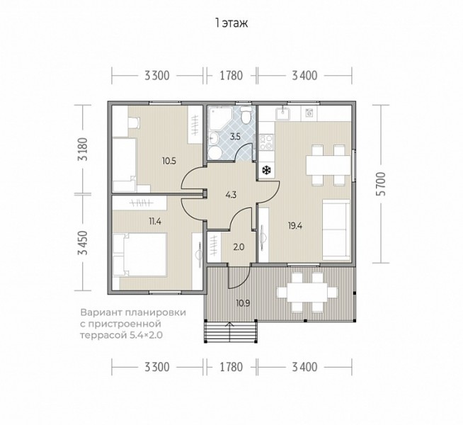 Особенность серии: широкое крыльцо, доступное уже в базовой комплектации. Дополнительно можно выбрать проект со вторым светом и террасой.
